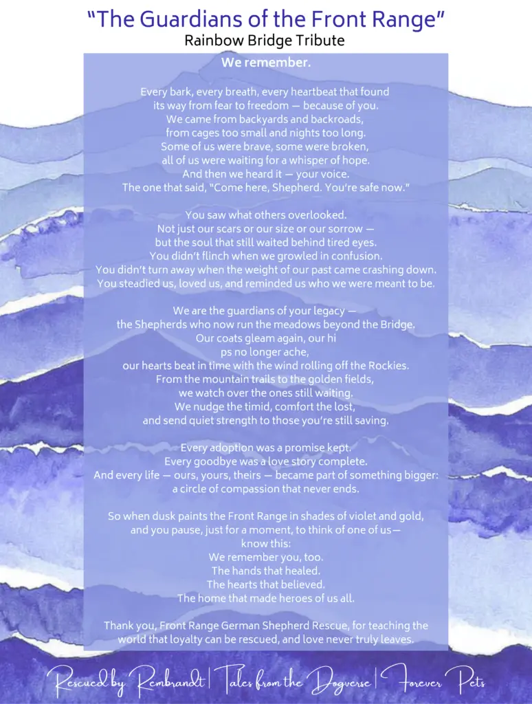 Thank you, Front Range German Shepherd Rescue, for teaching the world that loyalty can be rescued, and love never truly leaves.